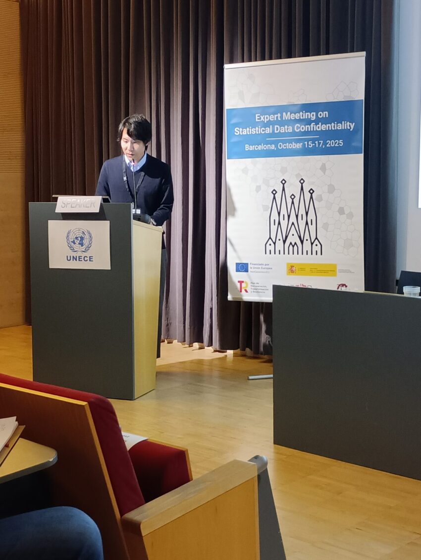 2025年10月15~17日に、スペイン・バルセロナで開催されたUNECE : United Nations Economic Commission for Europe (国連欧州経済委員会)主催の国際会議「Expert Meeting on Statistical Data Confidentiality」(統計データの秘匿性に関する専門家会議)に4名のプロジェクトメンバーが参加し、1件の口頭発表1件のポスター発表を行いました。